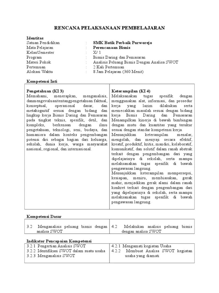 2017 untuk kelas x kompetensi keahlian bisnis daring dan pemasaran. Rpp perencanaan bisnis kelas x (10) smk/mak. Save save rpp perencanaan bisnis fix for later. Rpp perencanaan bisnis x.doc k13 rev 2018 update 2020 nadiem. Silabus pembelajaran rpp (rencana pelaksanaan pembelajaran pembelajaran) kkm .